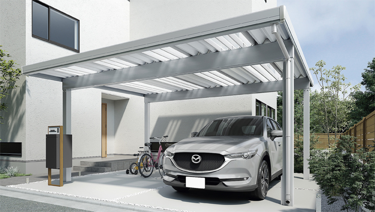 カーポートの費用は、駐車する車の台数、屋根の支え方(片支持・両支持)、強度やデザインなど、さまざまな要素によって大きく変わってきます。