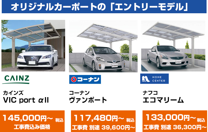 カインズのVICポートシリーズは、工事込み価格が104,800円(税込み)~とコストパフォーマンスに優れた人気のシリーズ。